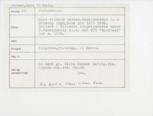 Hans Vilhelm Larsen, maskinmester f. i Otterup sogn, Sorø Amt 12/1 1898. Sejlede i allieret krigstjeneste under 2.verdenskrig bl.a. med M/S "Nordvest" Død e. 1978.
