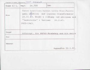 Søren Lauritzen kaldet Lille-Sven. Første gang på aktion mod Lygtens transformator 23.11.43. Dræbt i ildkamp ved aktionen mod "Tankstelle" i Vanløse 16.2.45. Født i 1923.