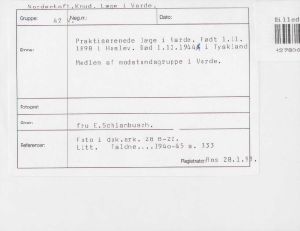 Knud Nordentoft. Praktiserenede læge i Varde. Født 1.11. 1898 i Haslev. Død 1.12.1944 i Tyskland. Medlem af modstandsgruppe i Varde.