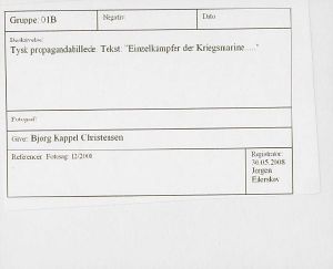 Maskingenkendt tekst fra fotokuvert: Tysk propagandabillede Tekst "Einzelkampfer der Kriegsmarine.....“