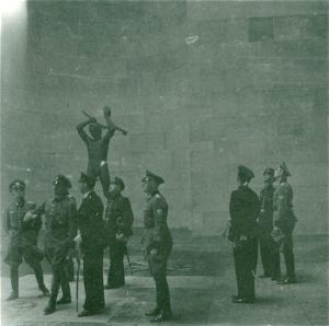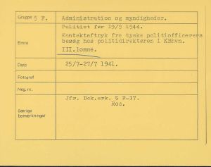 Maskingenkendt tekst fra fotokuvert: Politiet før 19/9 1944. Kontaktaftryk fra tyske politiofficerers besøg hos politidirektøren i Khn.