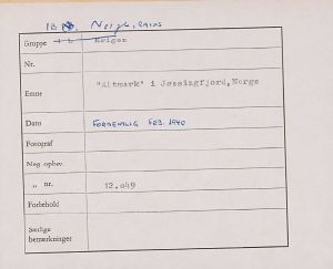 Maskingenkendt tekst fra fotokuvert: Altmark i Jøssing Fjord, Norge