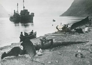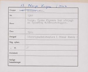 Maskingenkendt tekst fra fotokuvert: Norge. Tyske flyvere har ødelagt en fjendlig U-bådsødelægger.
