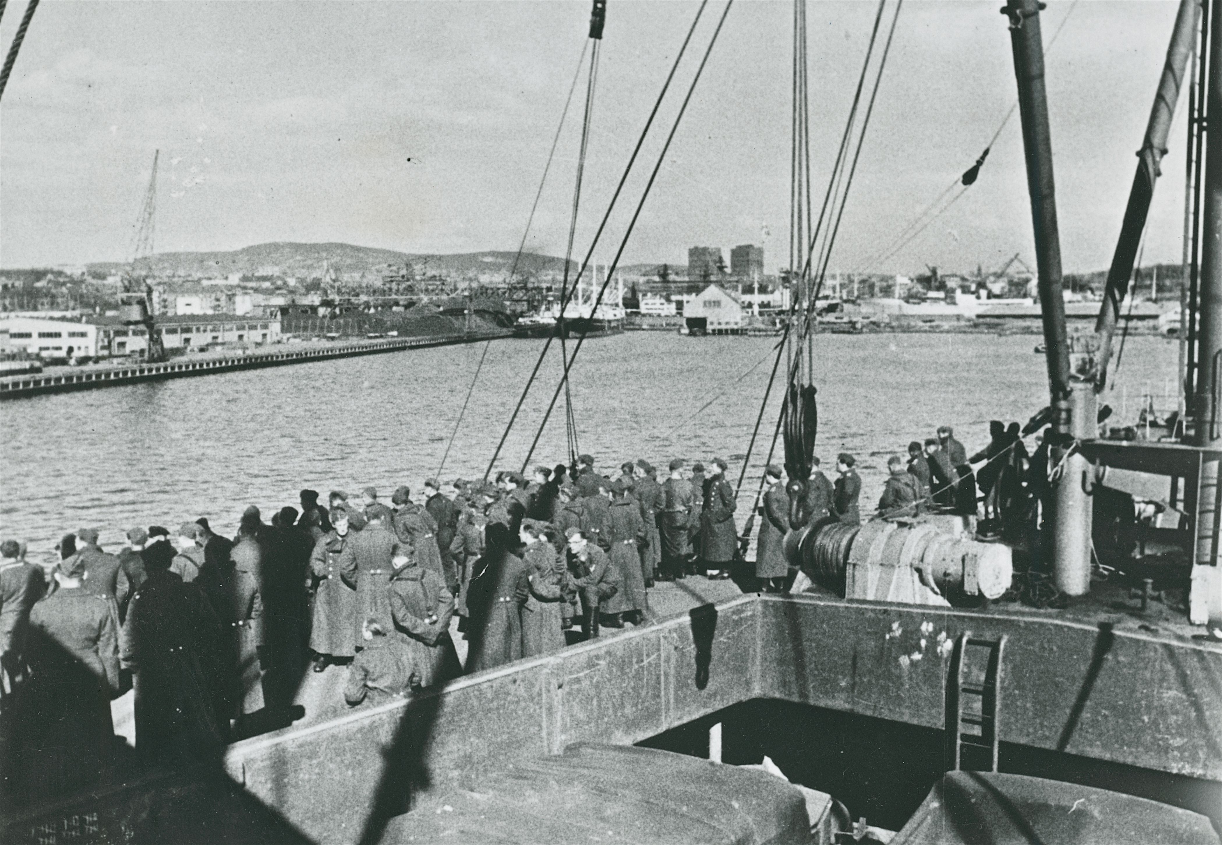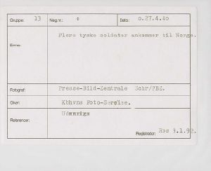 Maskingenkendt tekst fra fotokuvert: Flere tyske soldater ankommer til Norge