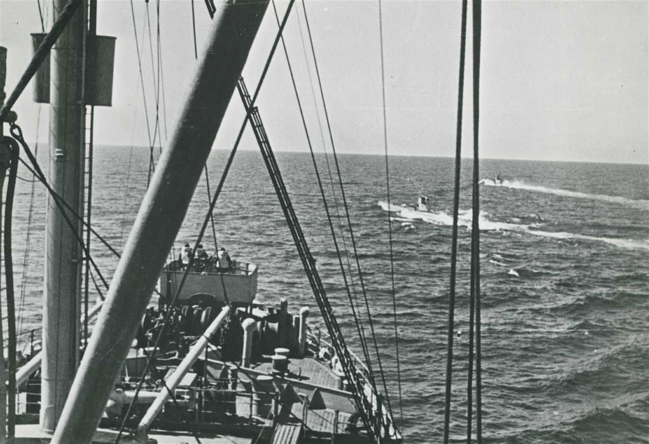 Maskingenkendt tekst fra fotokuvert: Tyske ubåde stævner ud.