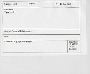 Maskingenkendt tekst fra fotokuvert: Tysk u-båd