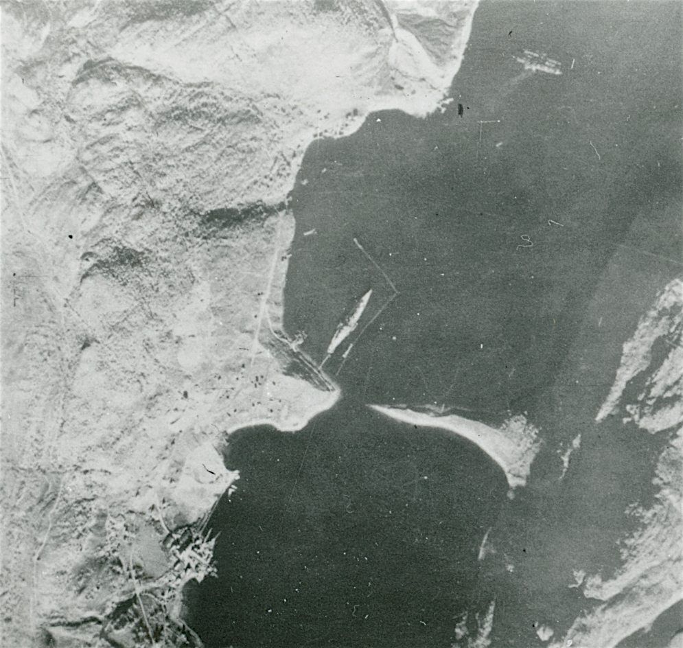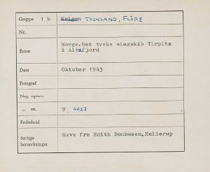 Maskingenkendt tekst fra fotokuvert: Norge. Det tyske slagskib Tirpitz i Altafjord