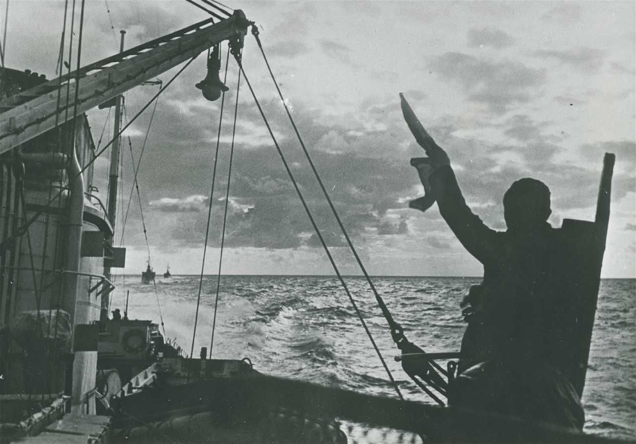 Maskingenkendt tekst fra fotokuvert: Tyske krigsskibe i den engelske kanal ved kysten.