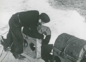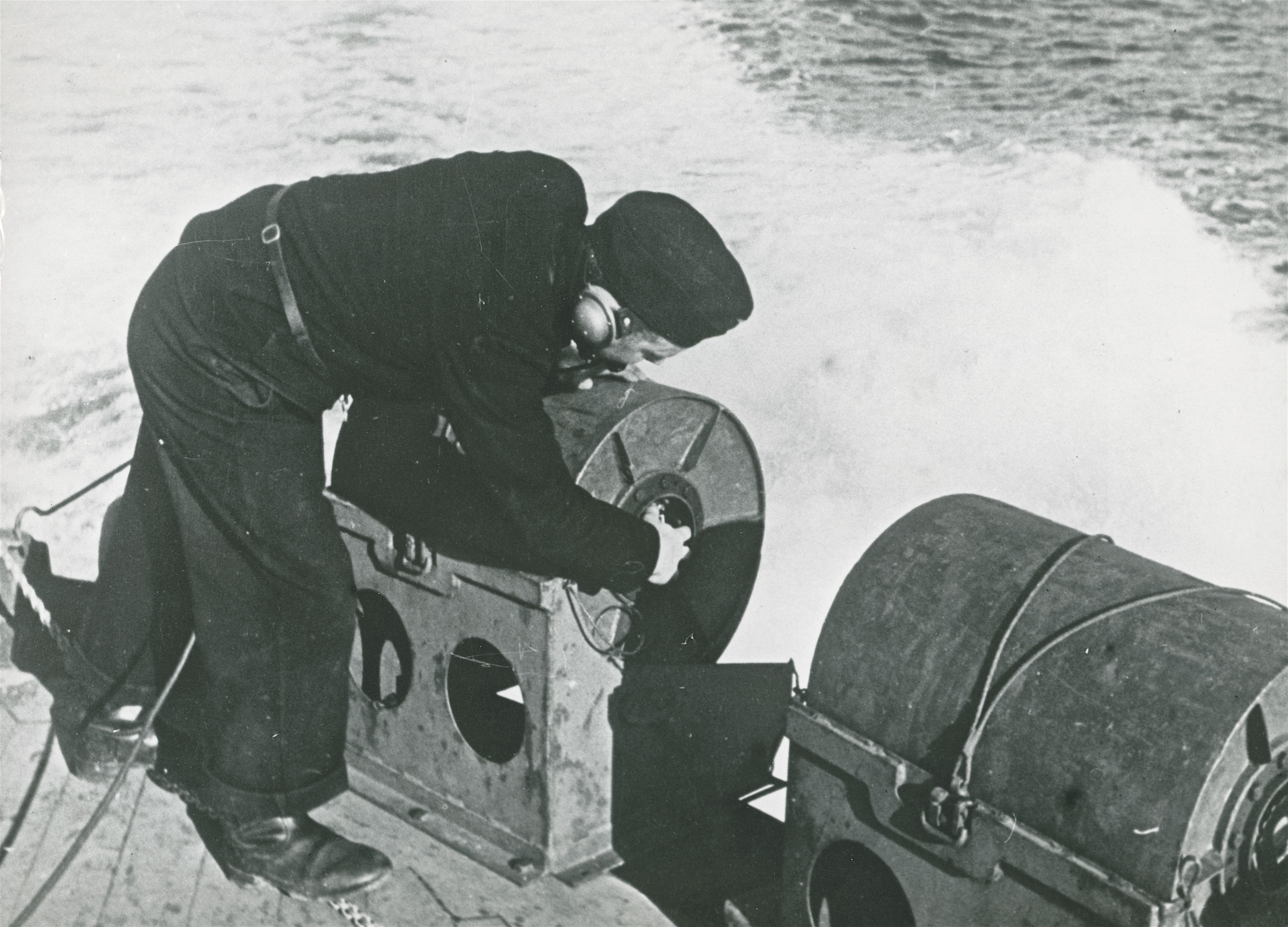 Maskingenkendt tekst fra fotokuvert: Tyskland. Tysk krigsskib hvor der gøres klar med dybvandsbombe.
