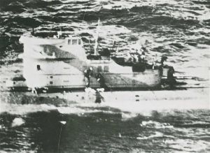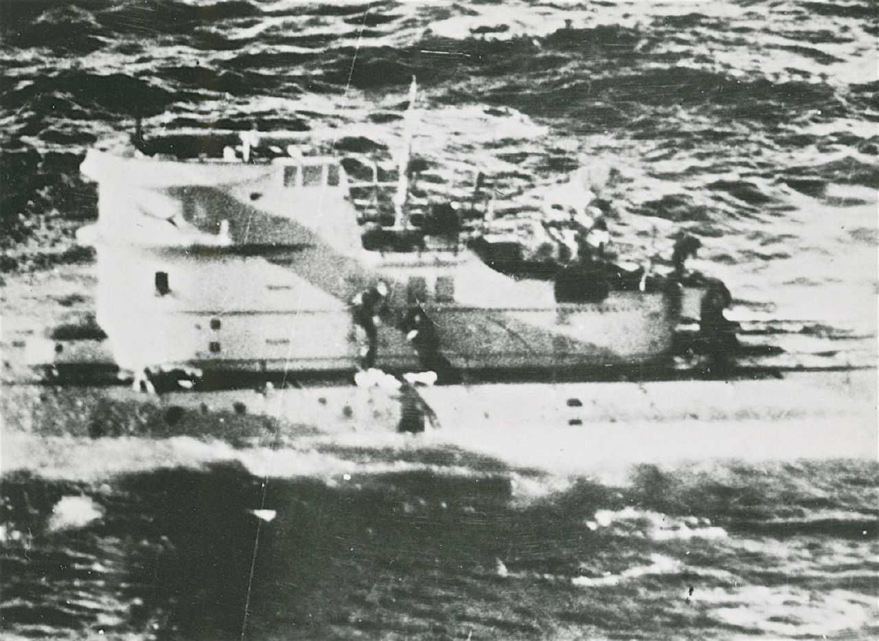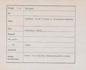 Maskingenkendt tekst fra fotokuvert: Sænket tysk U-båd i Biscaja-bugten