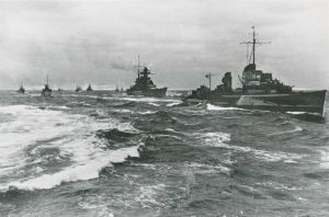 Maskingenkendt tekst fra fotokuvert: Tyske flådeenheder på gennem den Engelske kanal