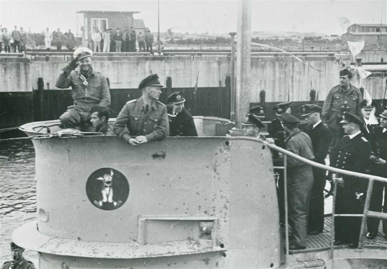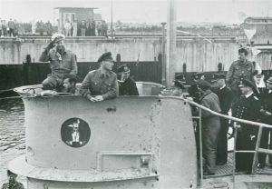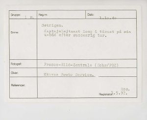 Maskingenkendt tekst fra fotokuvert: Søkrigen. Kaptajnløjtnant Lemp i tårnet på sin u-båd efter succesrig tur.