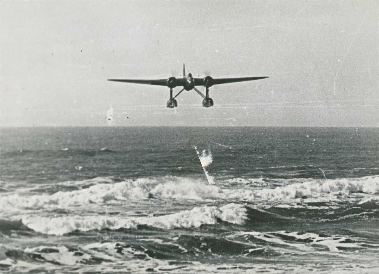 Maskingenkendt tekst fra fotokuvert: Tysk vandflyvemaskine på togt over Atlanten.