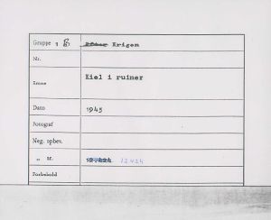 Maskingenkendt tekst fra fotokuvert: Kiel i ruiner