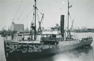 Maskingenkendt tekst fra fotokuvert: Engelsk slæbebåd. Uden stedsangivelse.