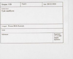 Maskingenkendt tekst fra fotokuvert: Tysk vandflyver.