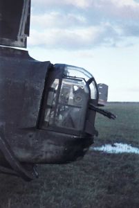 Amerikansk flyudstilling i Kastrup lufthavn september 1945.. På billedet ses agterskyttens våben