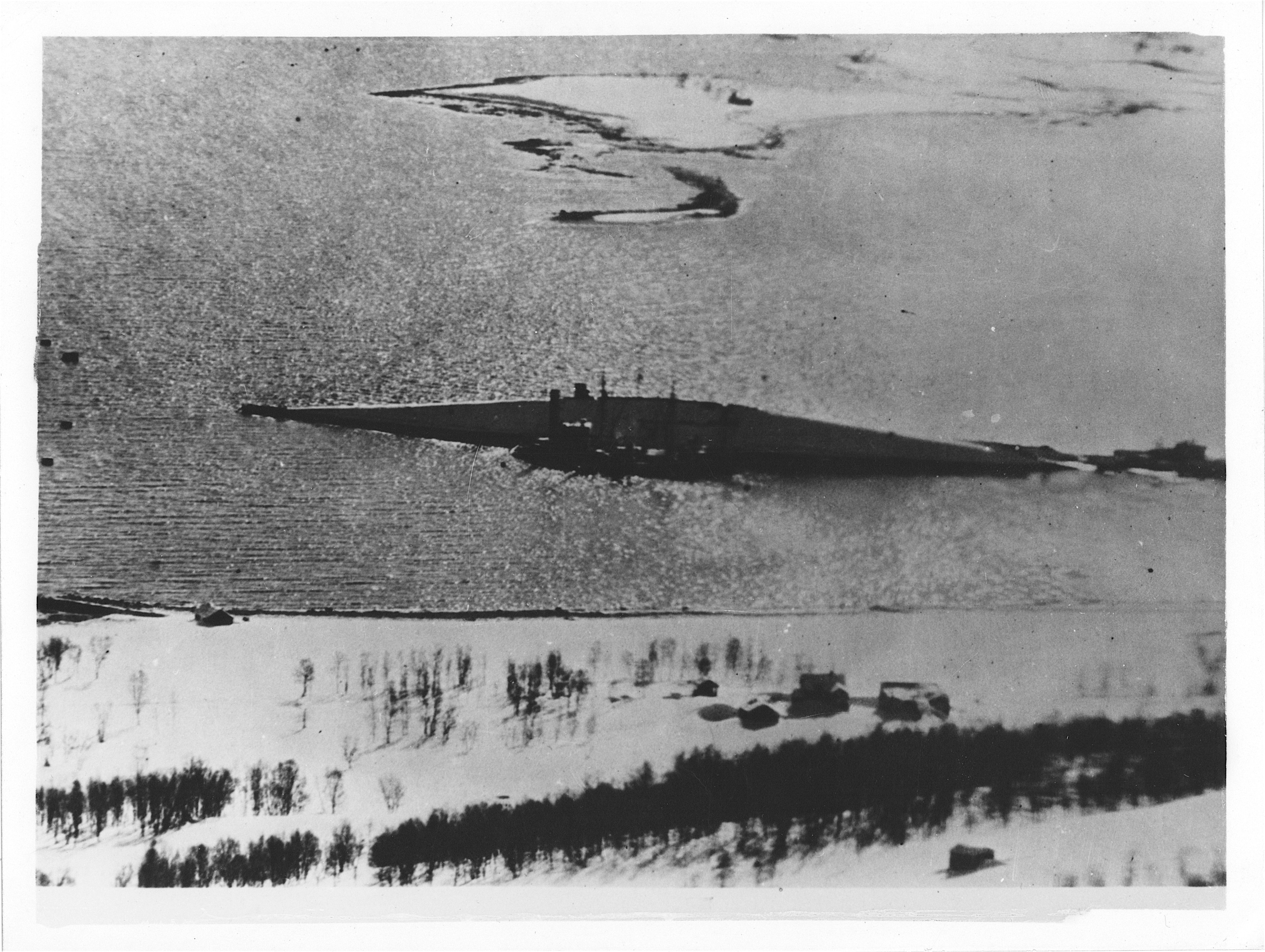Vraget af Tirpitz i Tromsø fjord efter sænkningen den 17. november 1944.