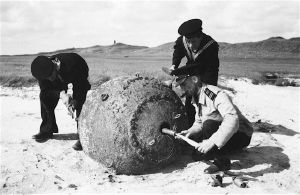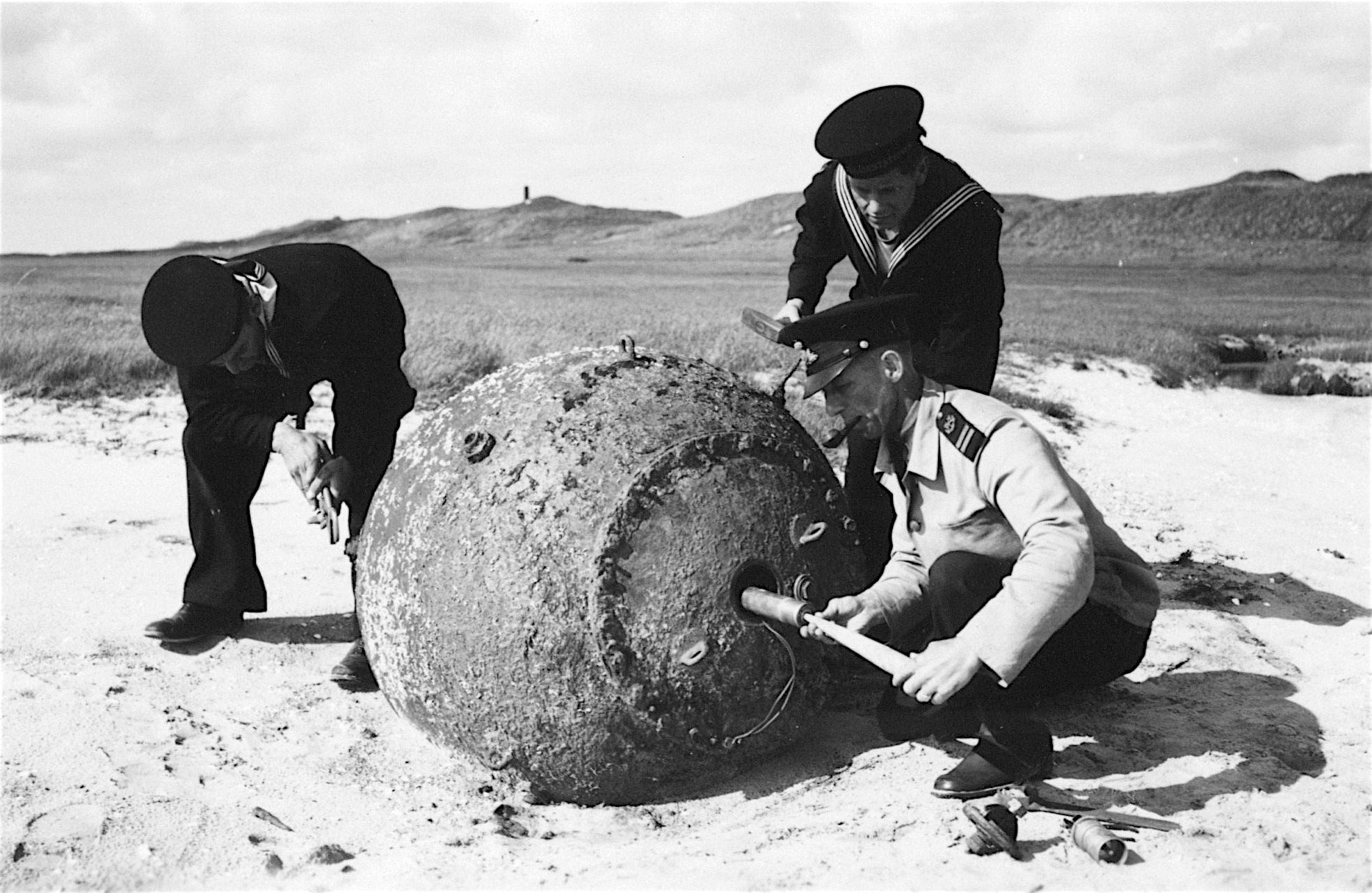 Søværnets minører i færd med at bortsprænge miner på Fanø