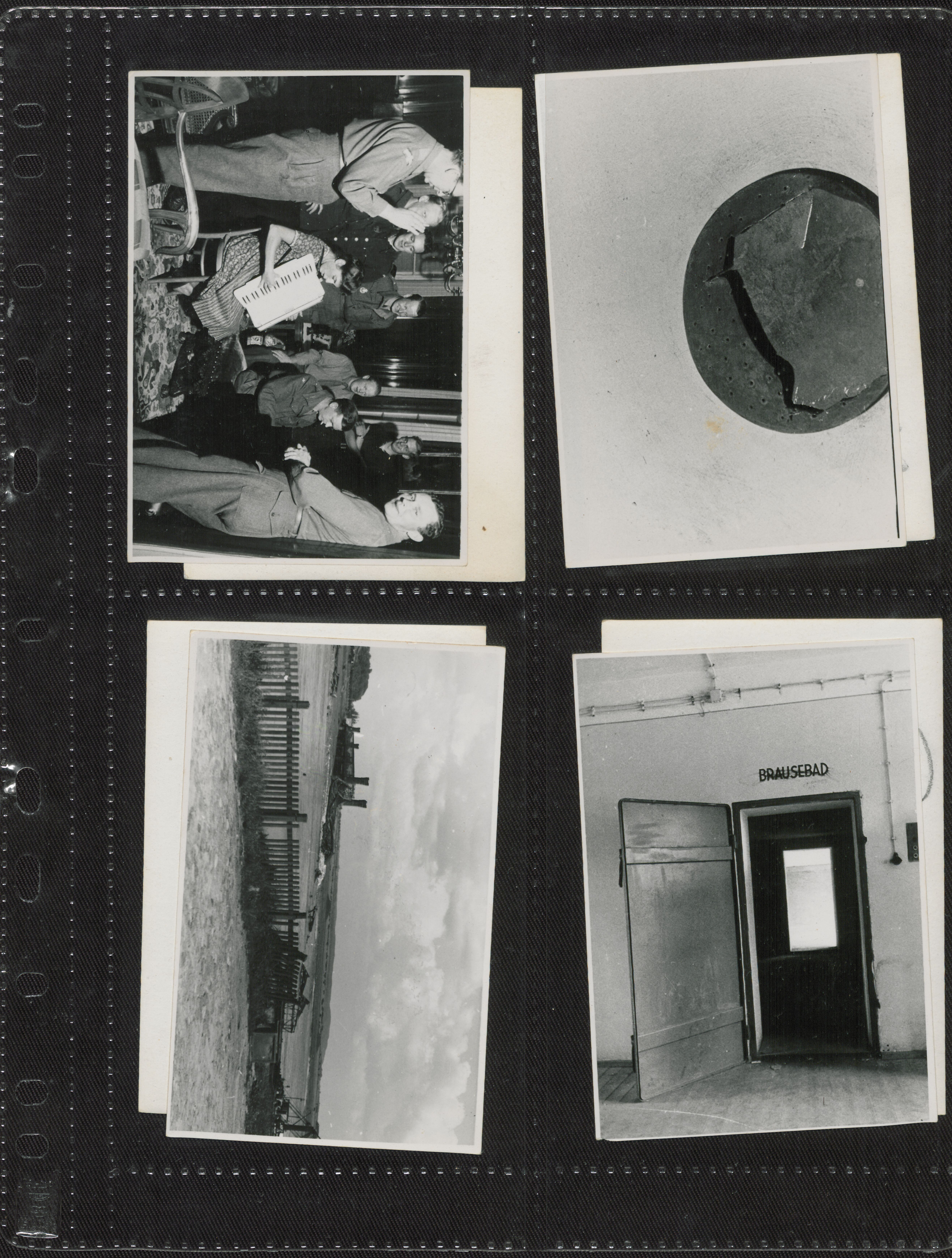 Enkeltside fra fotoalbum bestående af utekstede fotos fra Tyskland i sommeren 1945 taget i forbindelse med en ekspedition for at opspore danske statsborgere i fængsler og på sygehuse og kirkegårde.