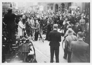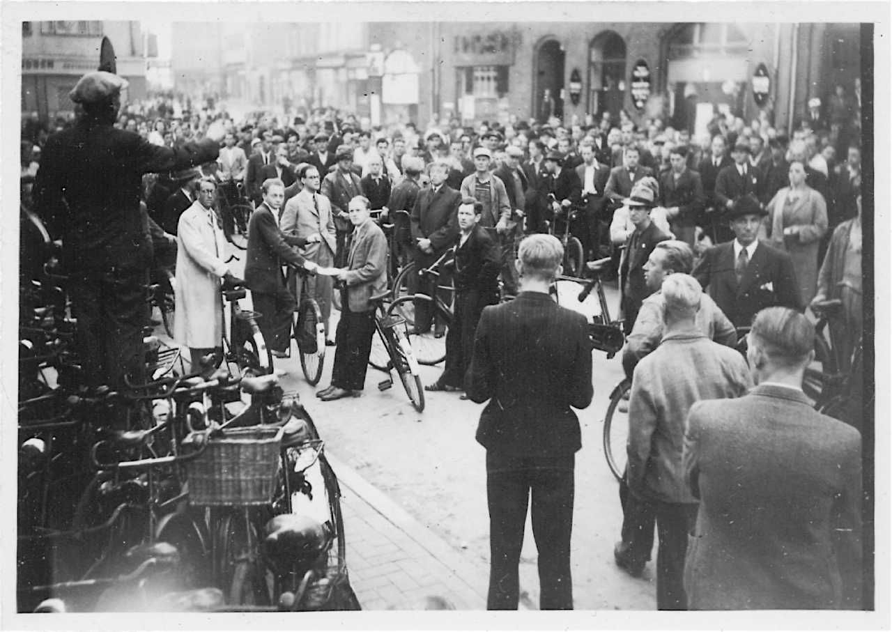 Enkeltfoto fra fotoalbum på løse ark med fotos fra Odense i 1943 - bl.a. augusturolighederne - og 1945 - bl.a. Gestapos hovedkvarter på Grand Hotel.