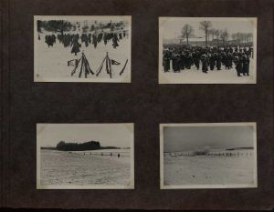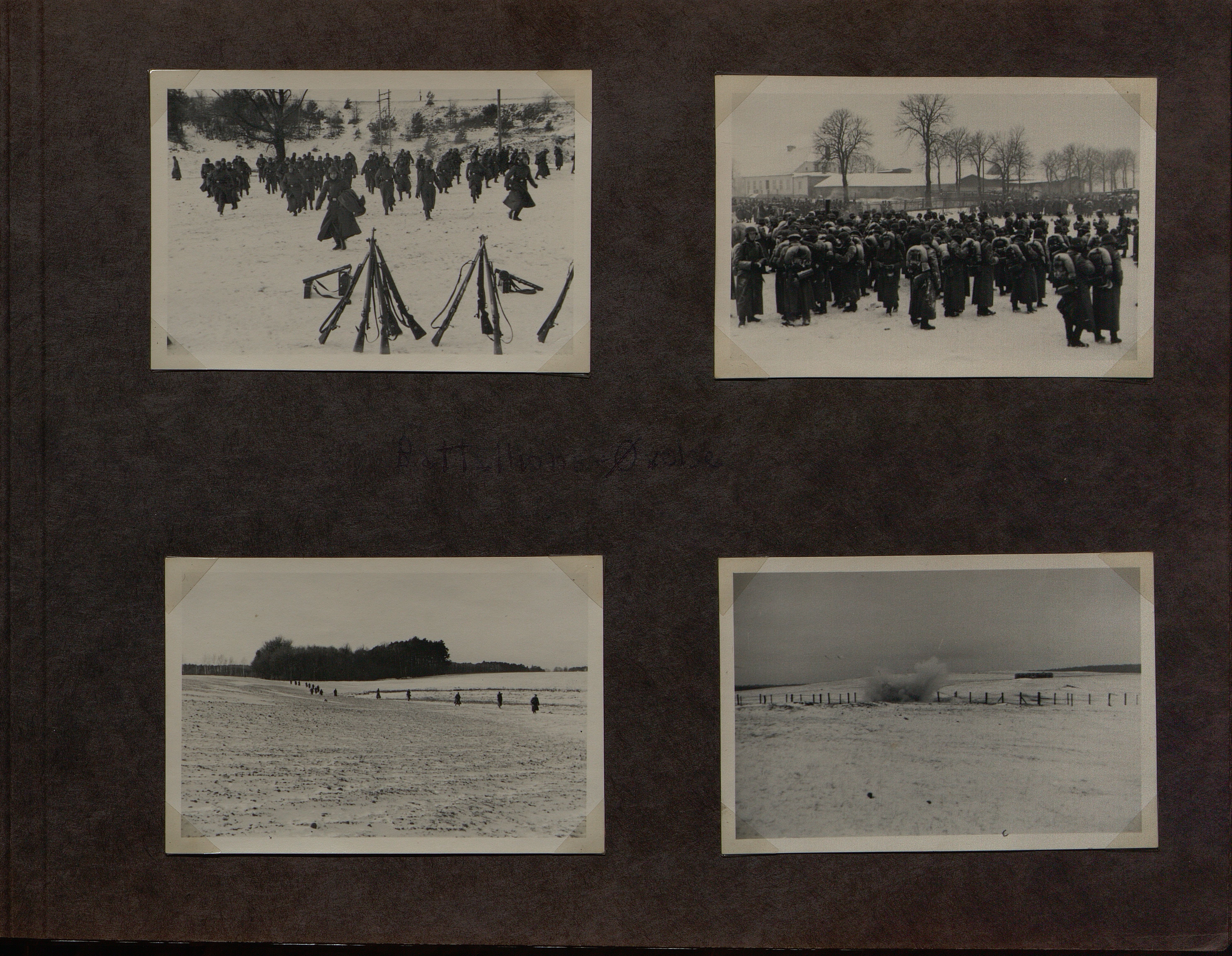 Enkeltside fra fotoalbum omhandlende Frikops Danmark. Fotos fra Langenhorn kaserne, Treskau og Breslau i perioden 1941-43. Fremstilleren af albummet optræder på flere af billederne med armprotese.