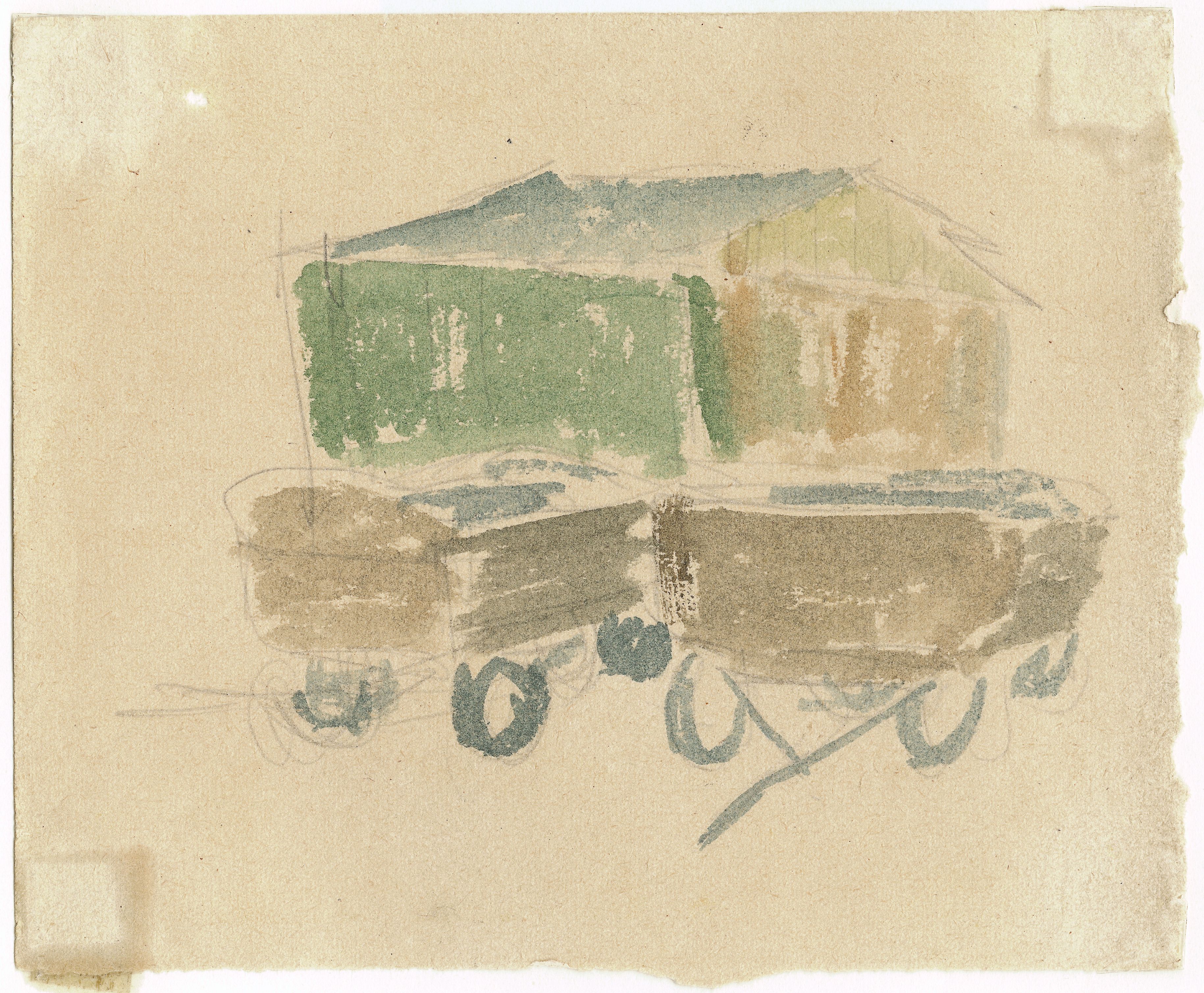 Foto optaget i forbindelse med CAMP2-projektet 1998-2000: Tegning/akvarel af kunstneren og koncentrationslejrfangen Per Ulrich: