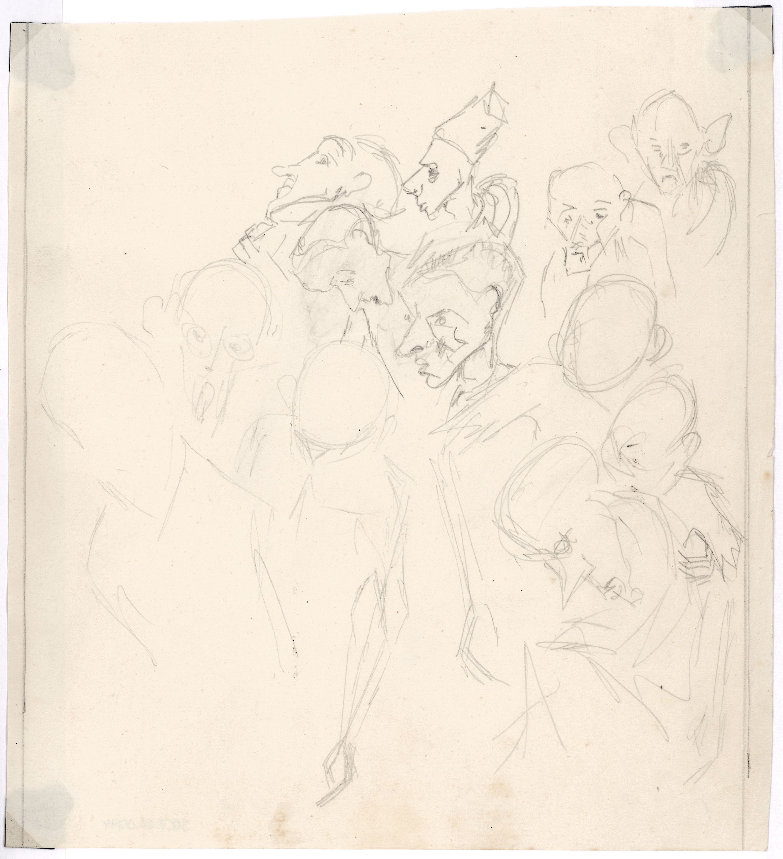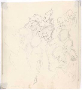 Foto optaget i forbindelse med CAMP2-projektet 1998-2000: Tegning af kunstneren og koncentrationslejrfangen Per Ulrich: Muselmænd i Sachsenhausen? Mål: H. 22,9 cm., B. 21,1 cm.