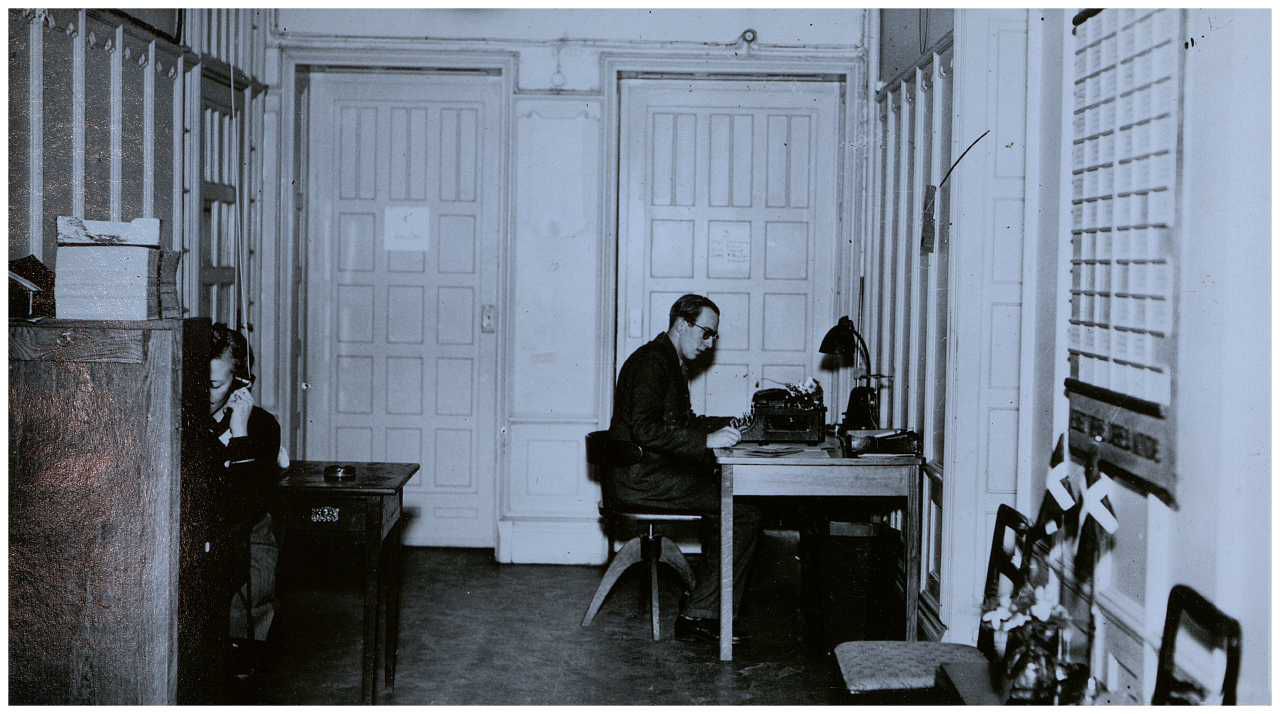 Enkeltfoto fra album med fotos af Den danske brigades ordenspolitiforlægning i Ryds-Bruun samt det danske gesandtskabs afdeling for politianliggender/ordenspolitiet i Stockholm, Göteborg, Helsingborg og Malmö. Dertil fotos af plantegninger og kort.