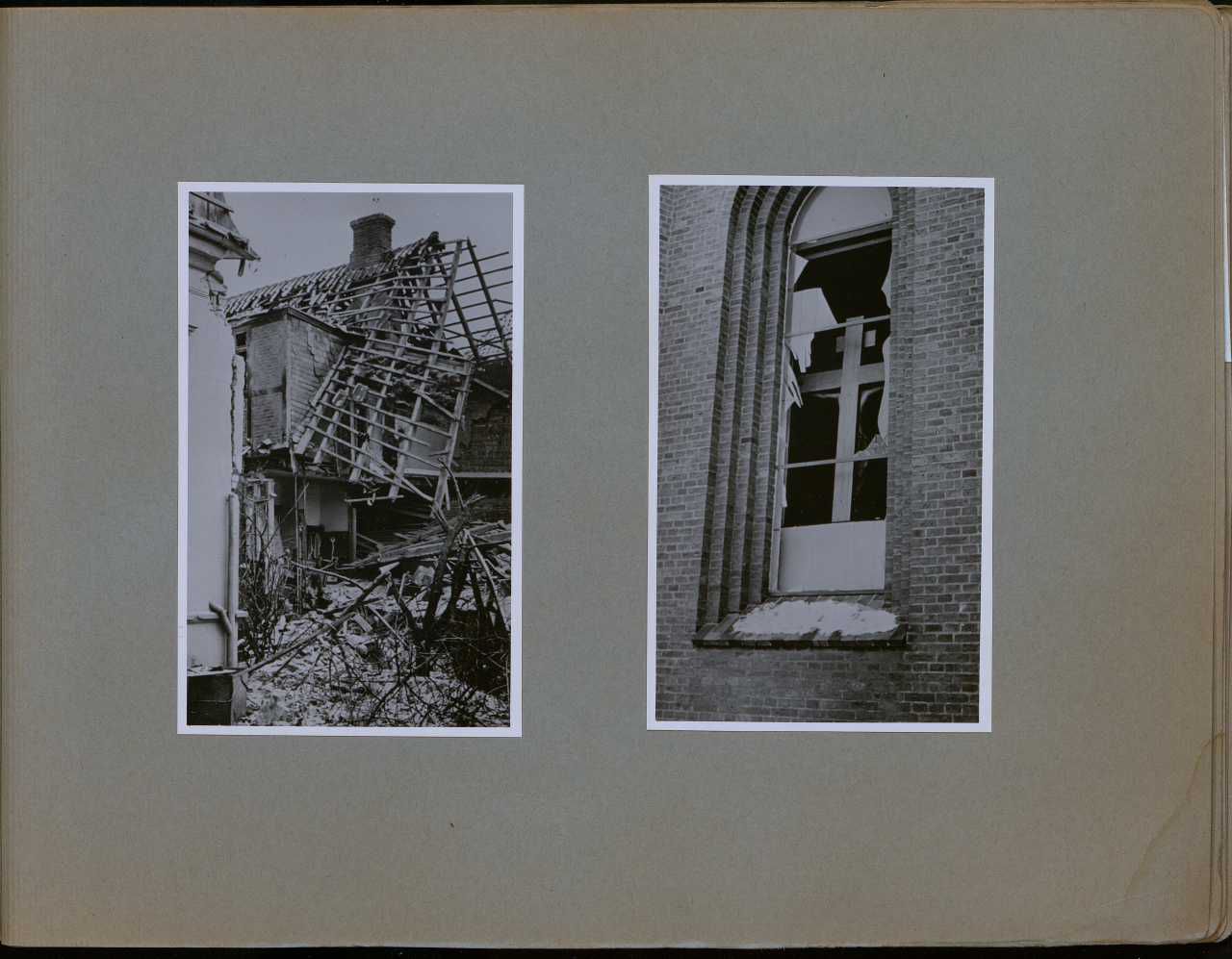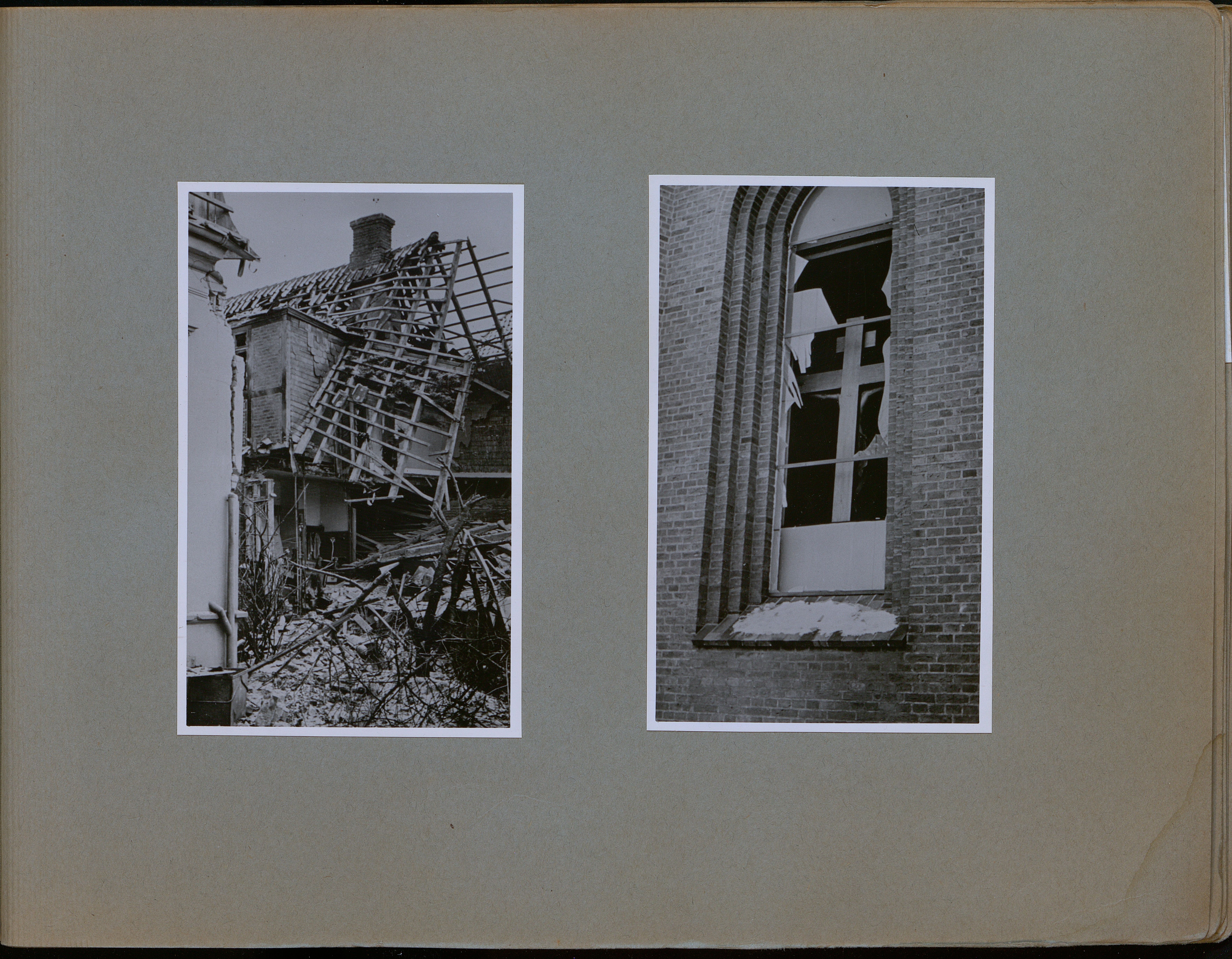 Enkeltside fra album med fotos fra politiet og dagliglivet, samt fra fejlbombning i Odense. Billederne er originale men dog ikke alle fra besættelsen. Album har tilhørt Chr. Erring der var ansat på Politigården.