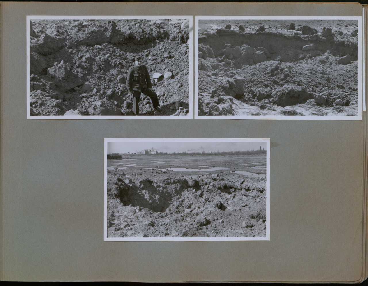 Enkeltside fra album med fotos fra politiet og dagliglivet, samt fra fejlbombning i Odense. Billederne er originale men dog ikke alle fra besættelsen. Album har tilhørt Chr. Erring der var ansat på Politigården.