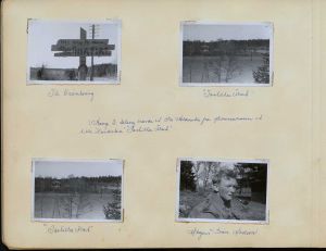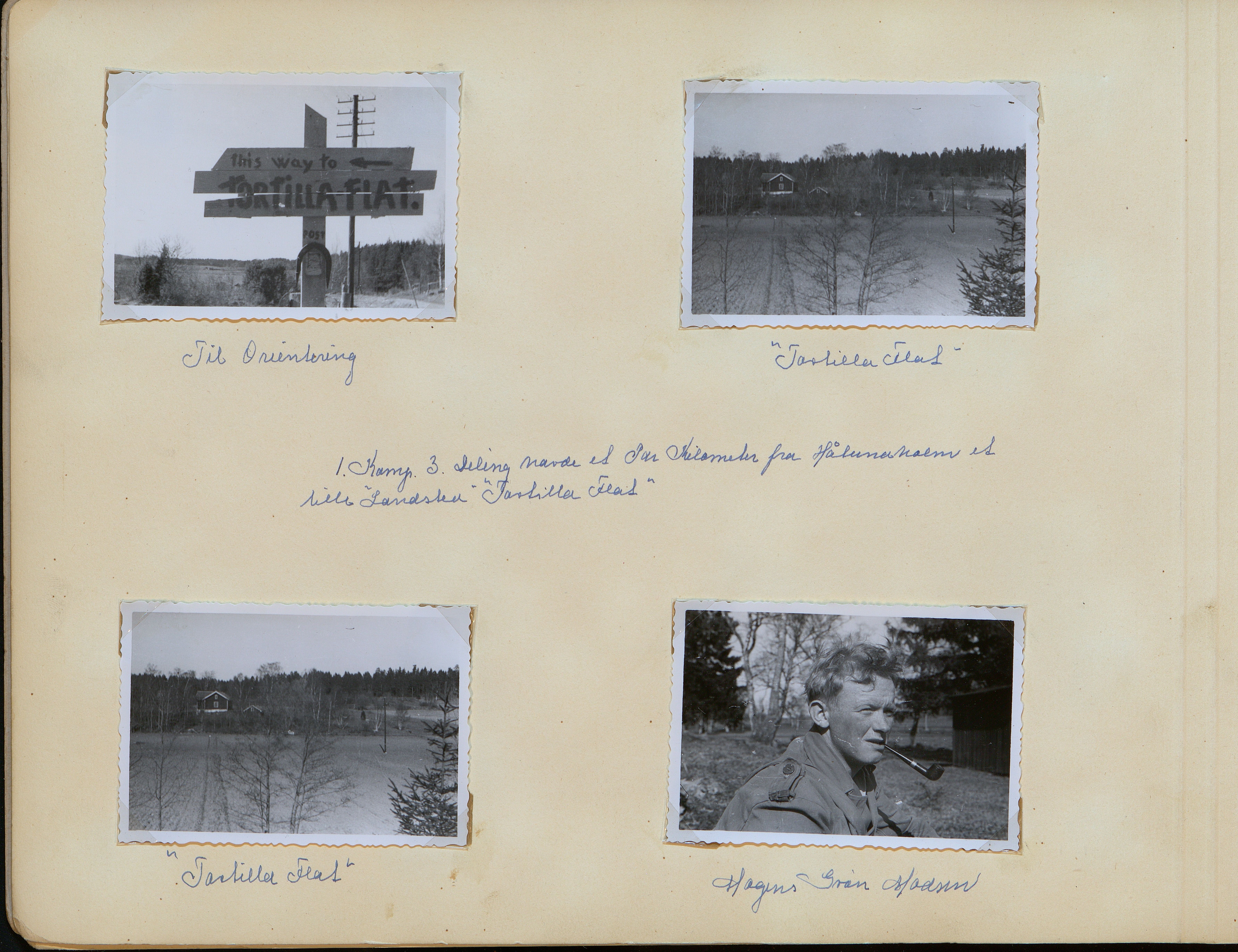 Enkeltside fra album med fotos fra Den danske brigade. Viser bl.a. behandlingen af bortdragende tyske soldater ved grænsen.