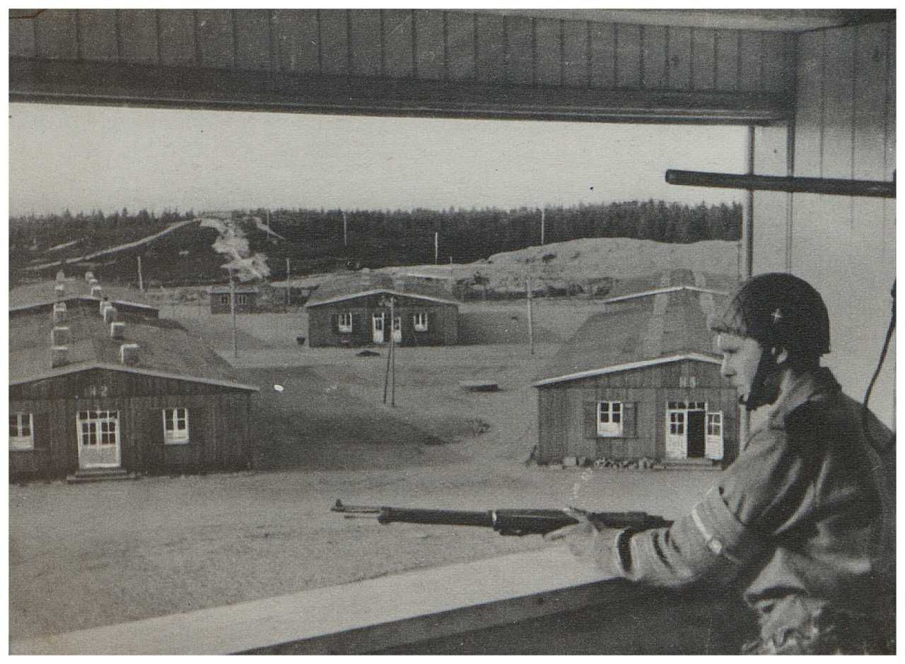 Enkeltfoto fra album med fotos fra Den danske brigade. Viser bl.a. behandlingen af bortdragende tyske soldater ved grænsen.