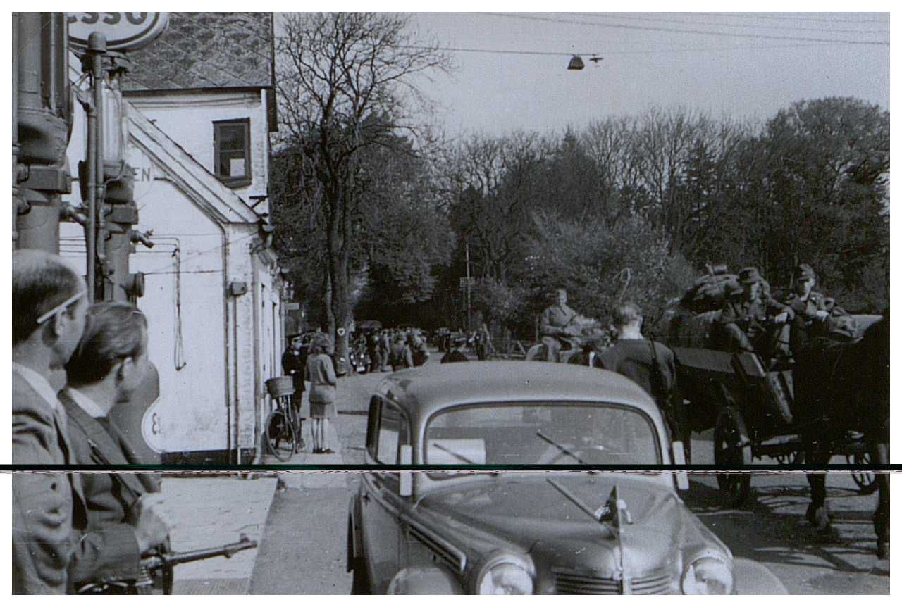 Enkeltfoto fra album med fotos fra Den danske brigade. Viser bl.a. behandlingen af bortdragende tyske soldater ved grænsen.