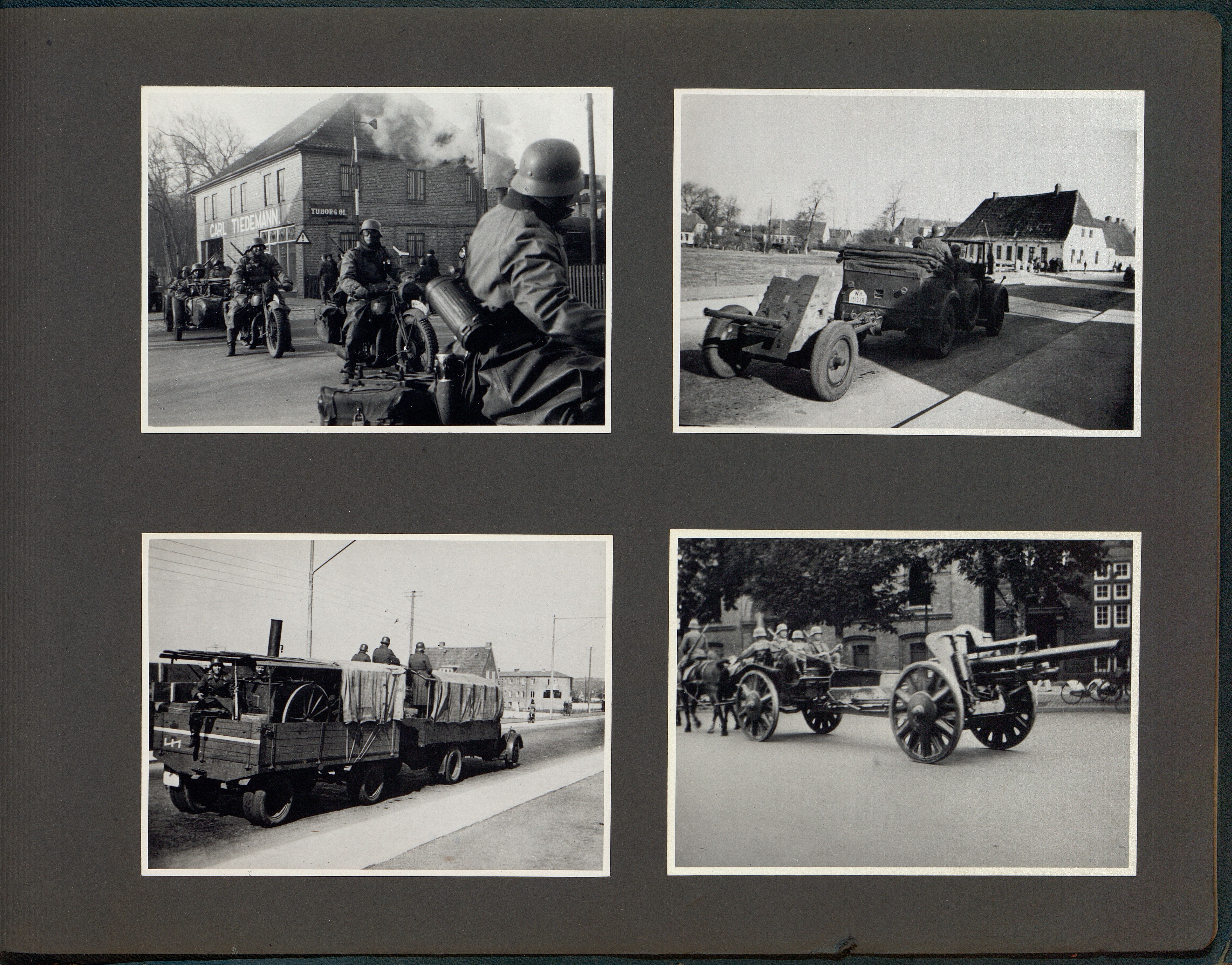 Enkeltside fra fotoalbum med fotos fra perioden 1939 til 9. april 1940, omhandlende dagligliv, Polen, Finland og den 9. april.