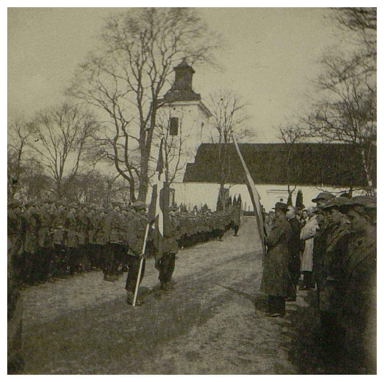 Enkeltfoto fra fotoalbum med fotos og udklip fra Den danske brigade i Håtunaholm.