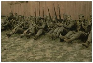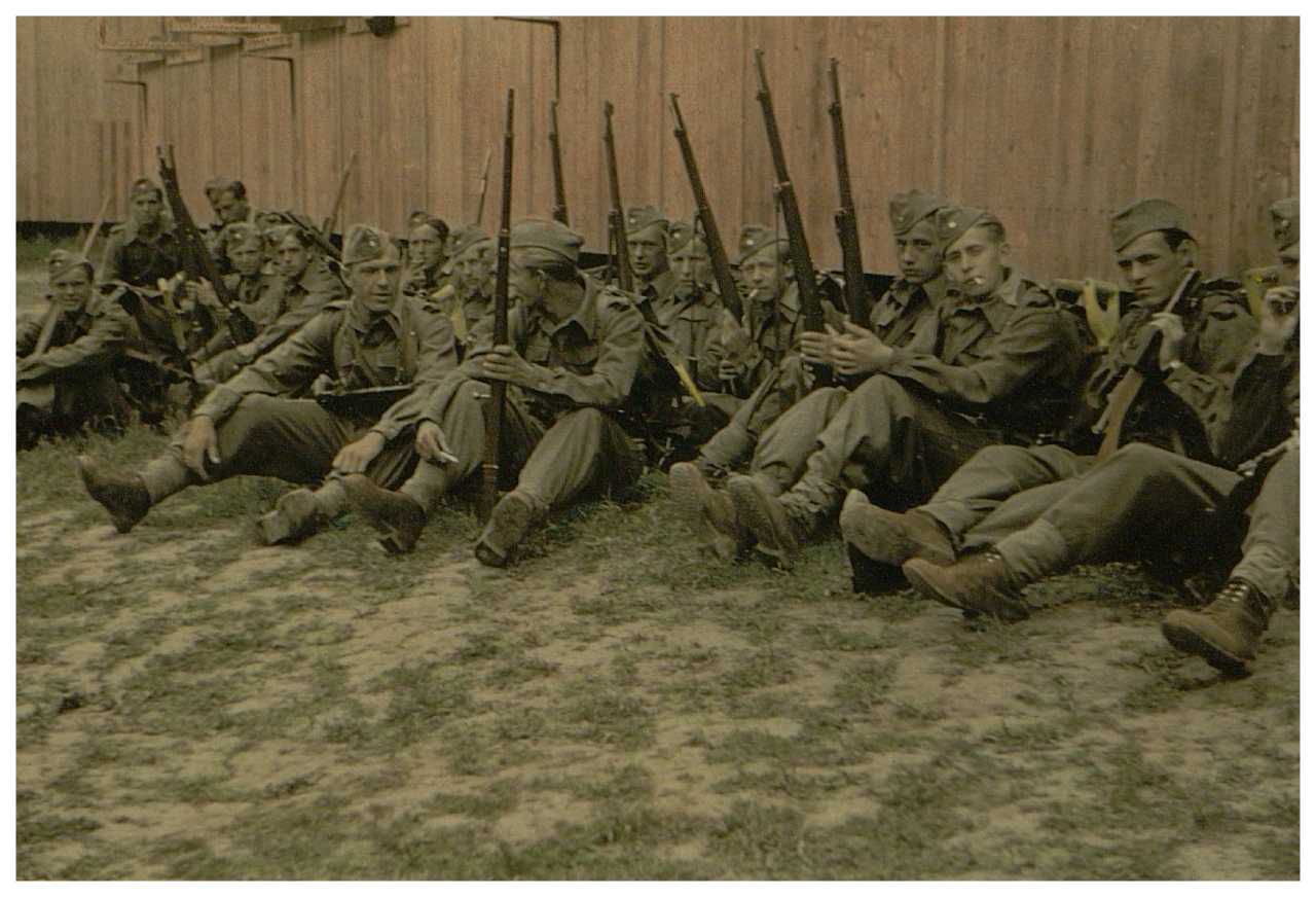 Enkeltfoto fra fotoalbum med fotos og udklip fra Den danske brigade i Håtunaholm.