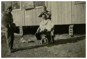 Enkeltfoto fra fotoalbum med fotos og udklip fra Den danske brigade i Håtunaholm.
