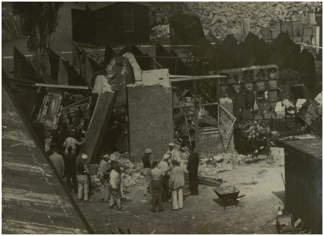 Enkeltfoto fra fotoalbum fra virksomheden Lauritz Knudsen: Sabotagen hos Laur. Knudsen d. 24. August 1943.