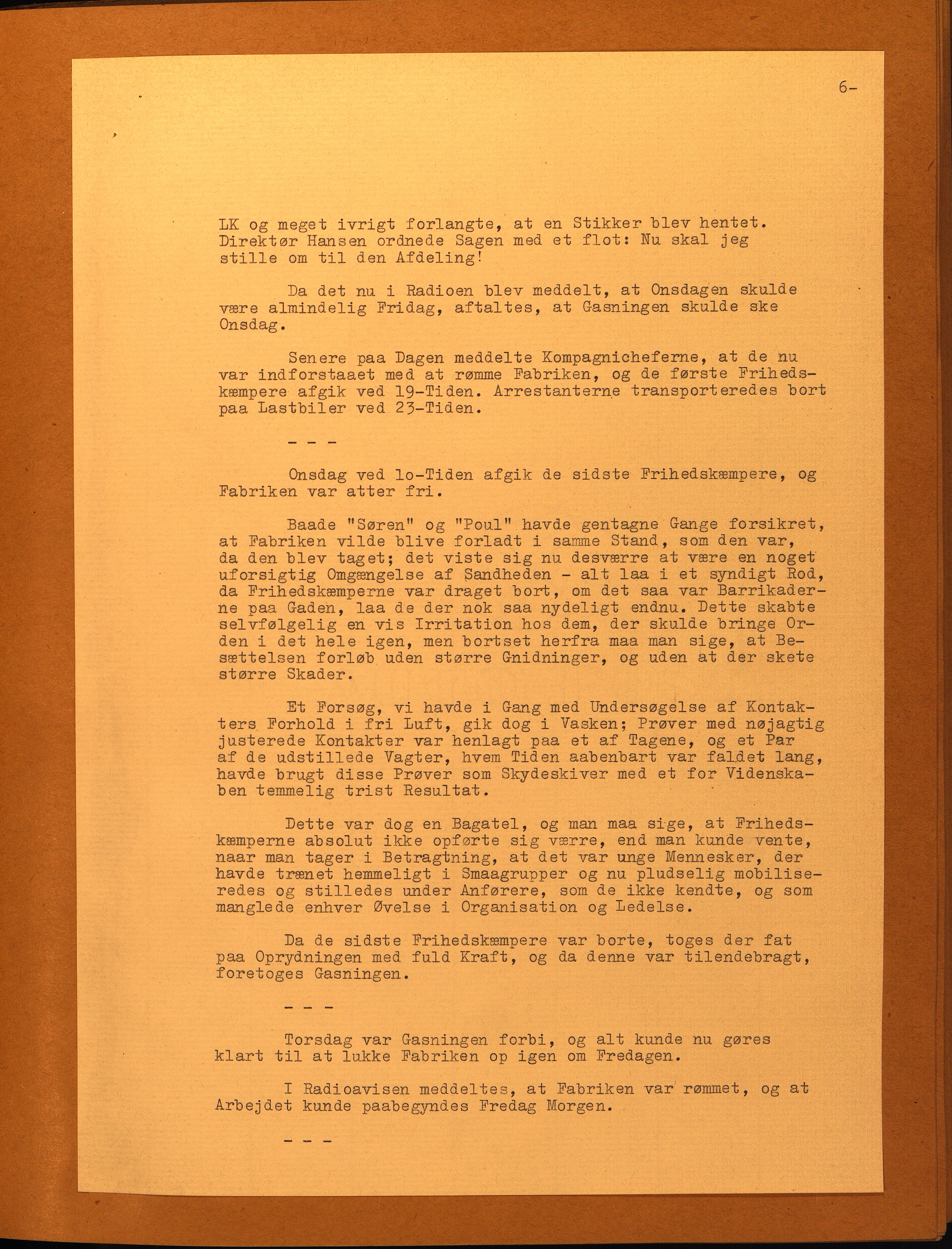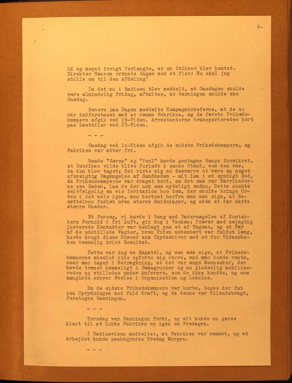 Enkeltside fra fotoalbum fra virksomheden Lauritz Knudsen: Frihedskæmpernes beslaglæggelse af LK d. 4. Maj 1945.
