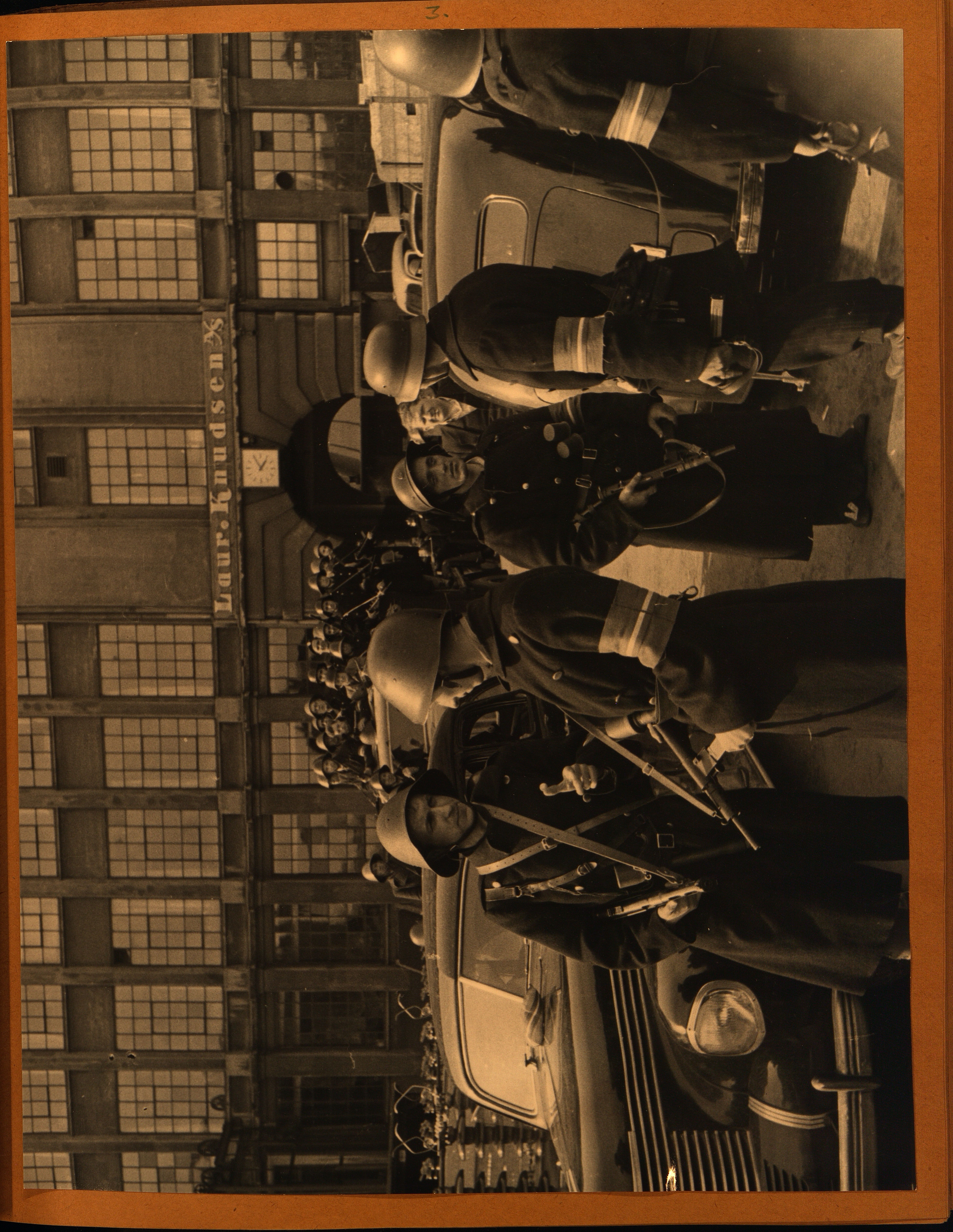 Enkeltside fra fotoalbum fra virksomheden Lauritz Knudsen: Frihedskæmpernes beslaglæggelse af LK d. 4. Maj 1945.
