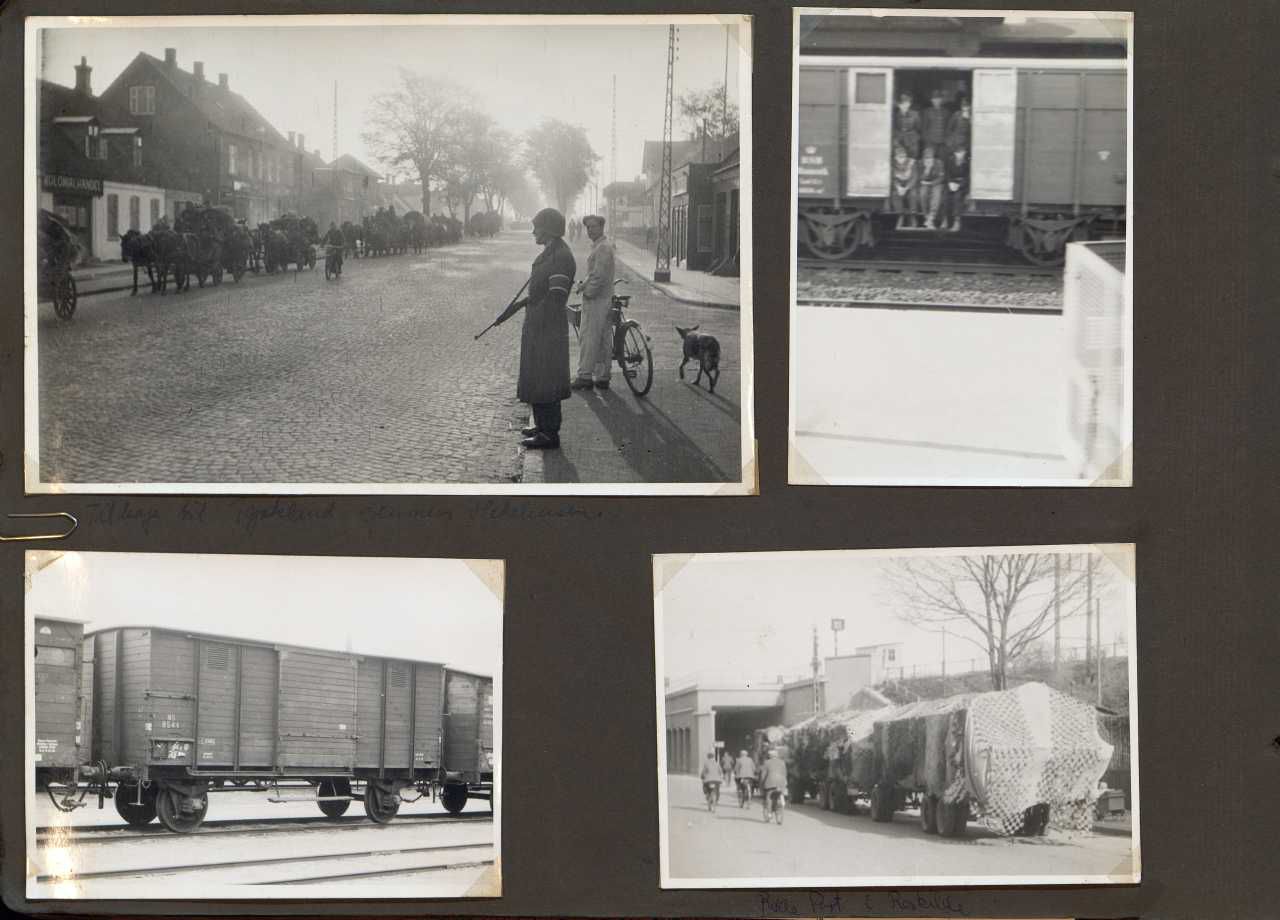Enkeltside fra fotalbum omhandlende besættelsen med tyngdepunkt i Hedehusene. Albummet er købt af fru Aase Børresen af forh. politibetjent Bjarne Alstrup og siden indkommet til Høje-Taastrup Lokalhistoriske arkiv i 1977-78.