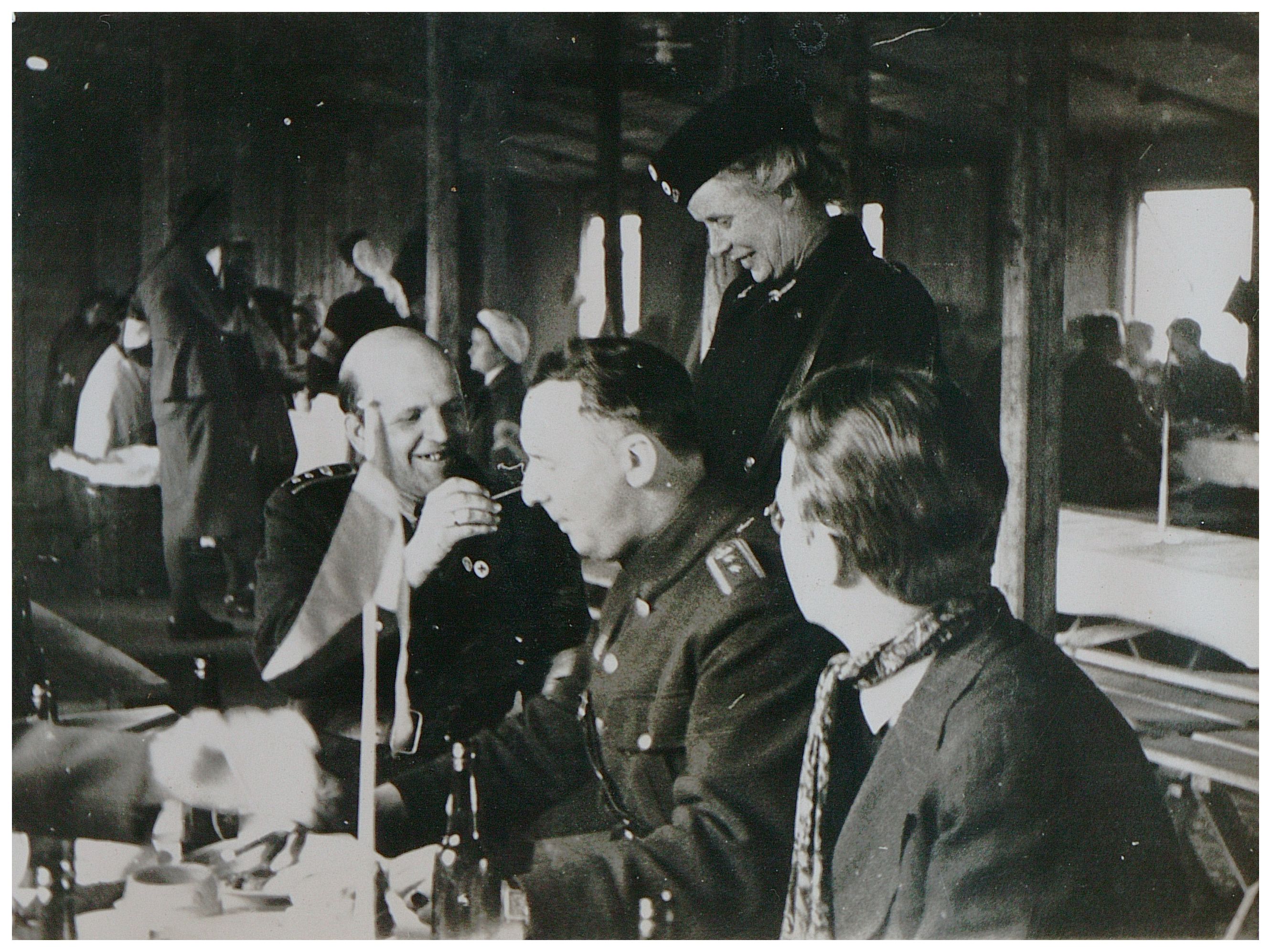 Enkeltfoto fra fotoalbum omhandlende karantænestationen i Padborg marts-maj 1945, samt De hvide busser. Albummet er tilegnet Frihedsmuseet af enken til fotograf Svend Thy Christensen der lavede albummet.