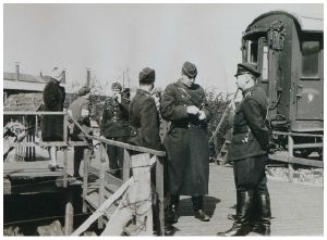 Enkeltfoto fra fotoalbum omhandlende karantænestationen i Padborg marts-maj 1945, samt De hvide busser. Albummet er tilegnet Frihedsmuseet af enken til fotograf Svend Thy Christensen der lavede albummet.