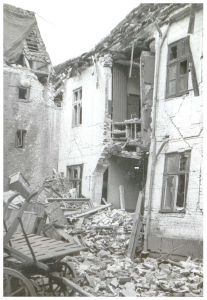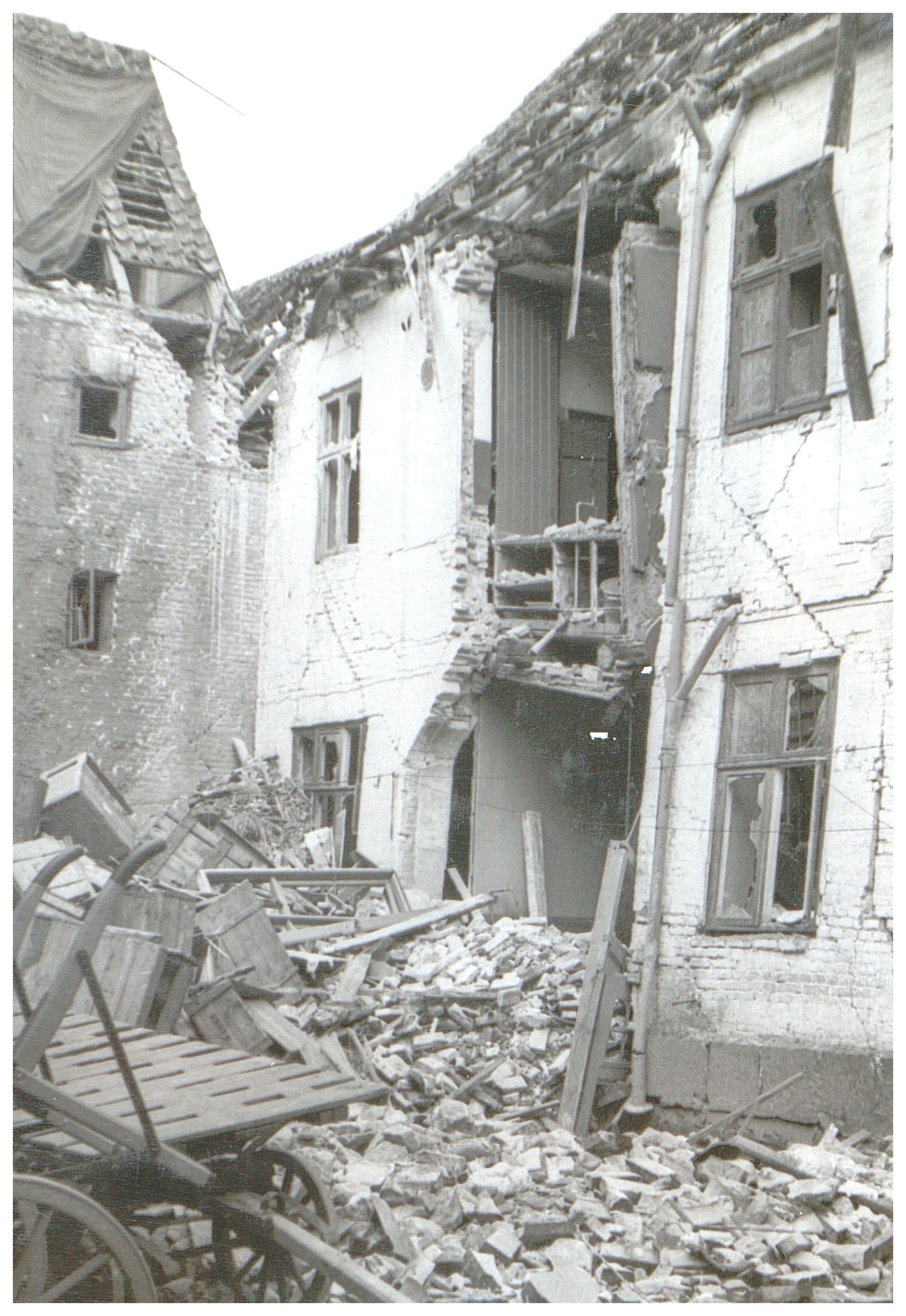 Enkeltfoto fra fotoalbum med seriebilleder fra 9. April 1940 og bombardementerne af Aalborg i 1940. Desuden bombeskadede bygninger i Nyborg samt nedskudte allierede fly.