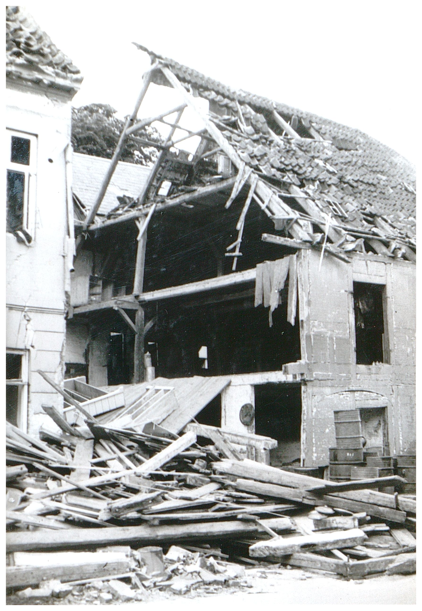 Enkeltfoto fra fotoalbum med seriebilleder fra 9. April 1940 og bombardementerne af Aalborg i 1940. Desuden bombeskadede bygninger i Nyborg samt nedskudte allierede fly.