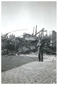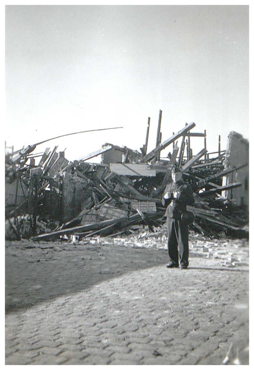 Enkeltfoto fra fotoalbum med seriebilleder fra 9. April 1940 og bombardementerne af Aalborg i 1940. Desuden bombeskadede bygninger i Nyborg samt nedskudte allierede fly.