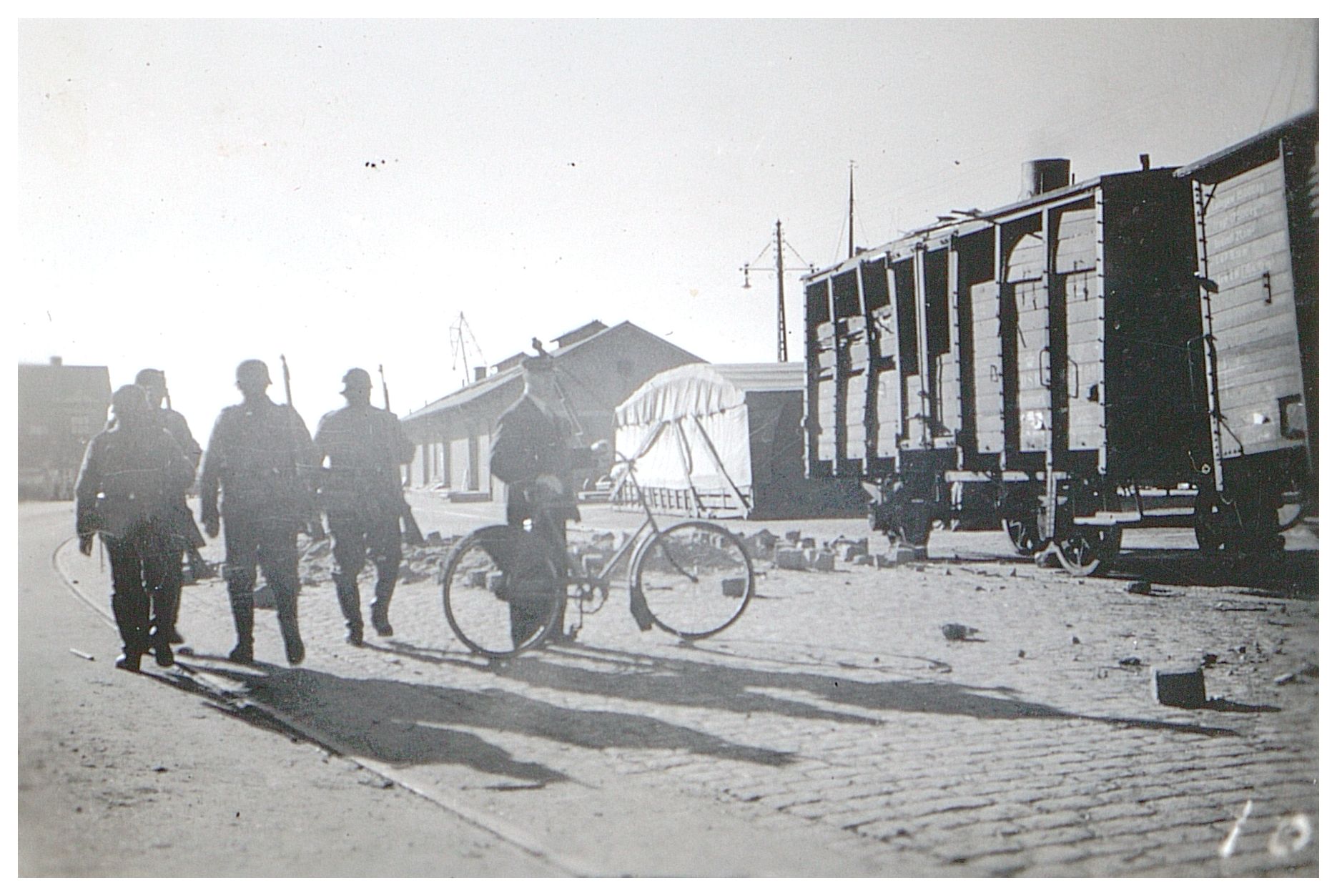 Enkeltfoto fra fotoalbum med seriebilleder fra 9. April 1940 og bombardementerne af Aalborg i 1940. Desuden bombeskadede bygninger i Nyborg samt nedskudte allierede fly.