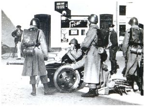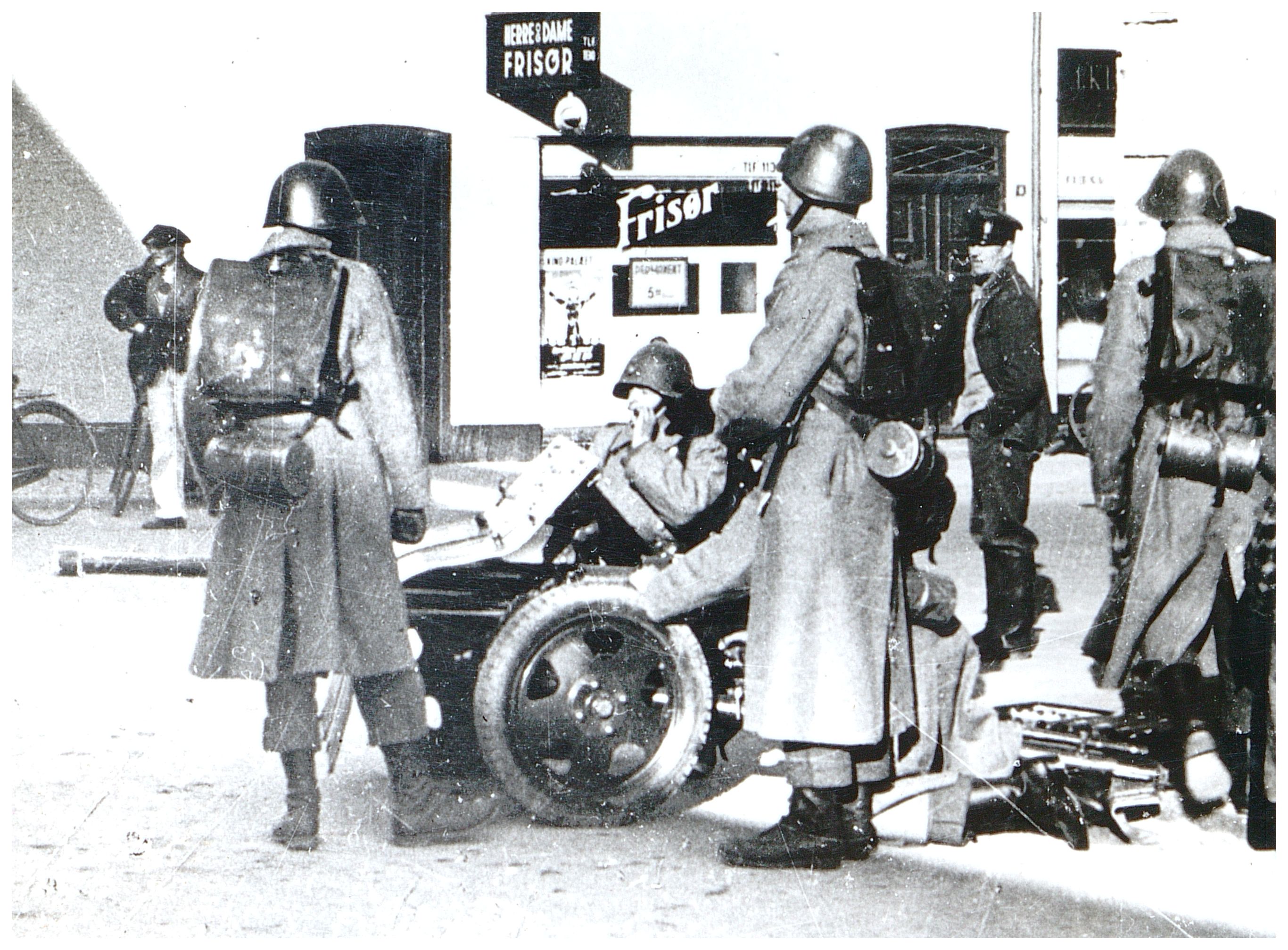 Enkeltfoto fra fotoalbum med seriebilleder fra 9. April 1940 og bombardementerne af Aalborg i 1940. Desuden bombeskadede bygninger i Nyborg samt nedskudte allierede fly.
