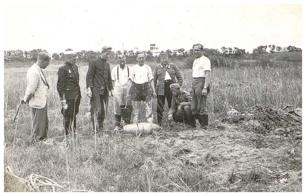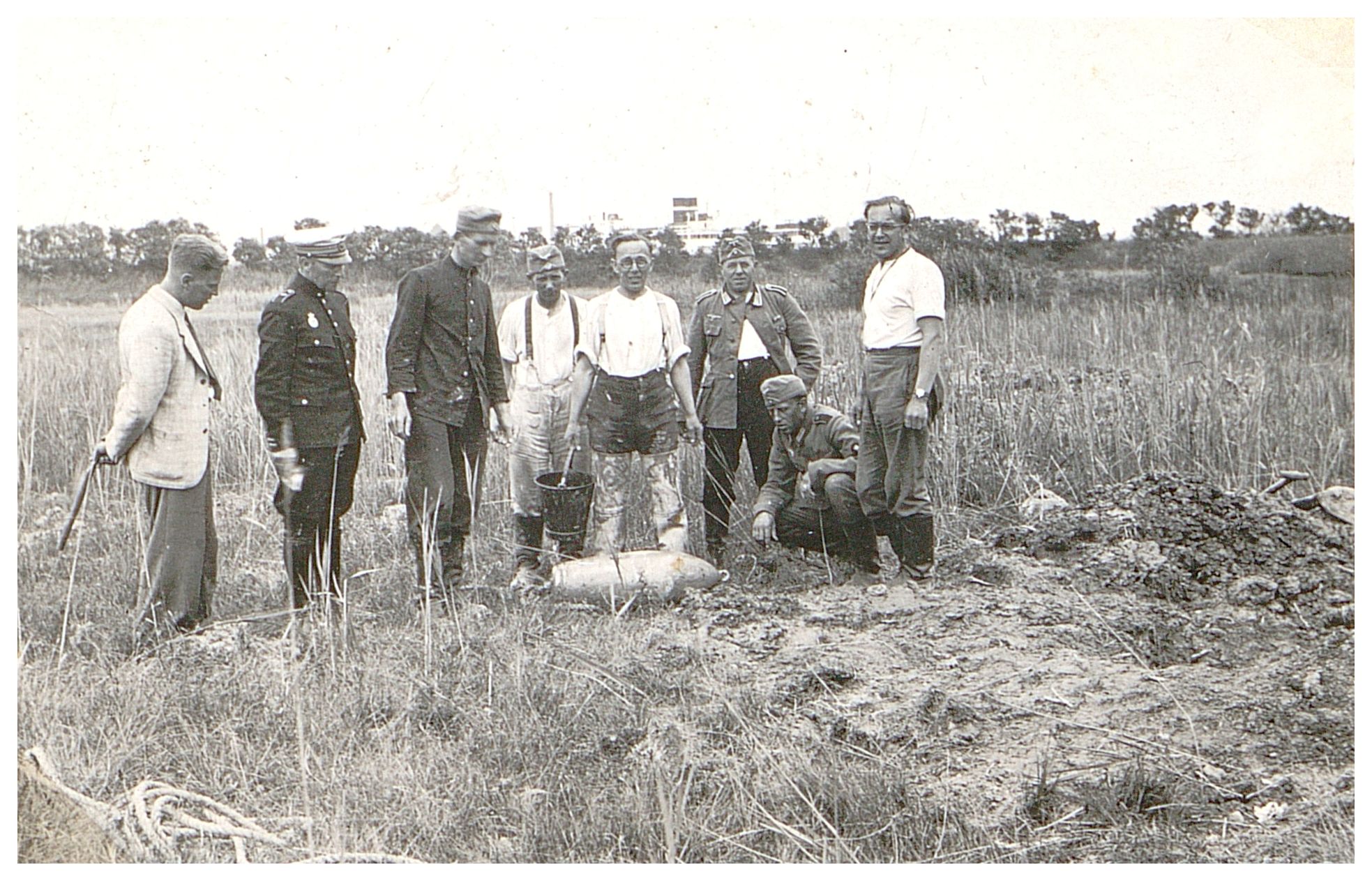 Enkeltfoto fra fotoalbum med seriebilleder fra 9. April 1940 og bombardementerne af Aalborg i 1940. Desuden bombeskadede bygninger i Nyborg samt nedskudte allierede fly.